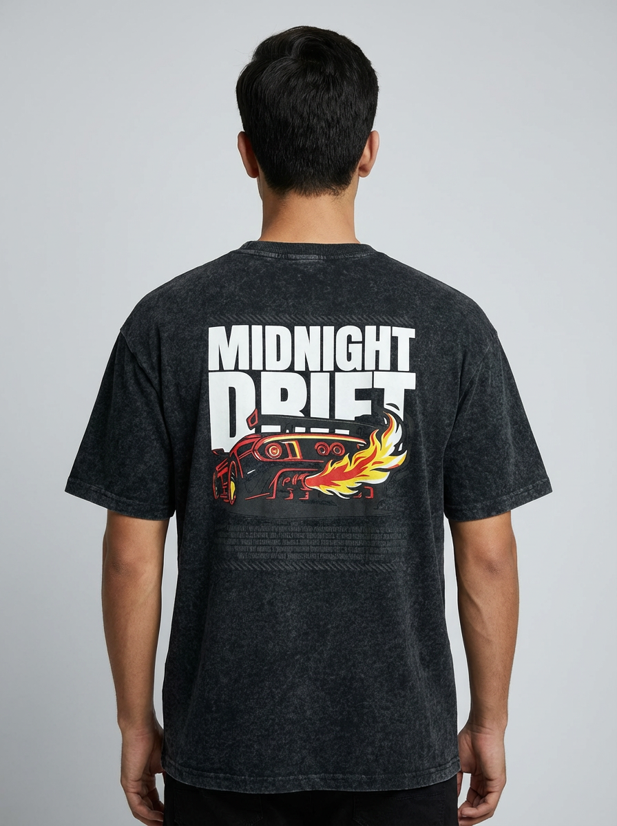 Relaxed style meets everyday comfort. The Midnight Drift Downshoulder Washed T-Shirt features a soft washed finish and a modern drop-shoulder fit for a laid-back streetwear look. The bold “ESCAPE THE WORLD” front print adds a minimal yet striking vibe.